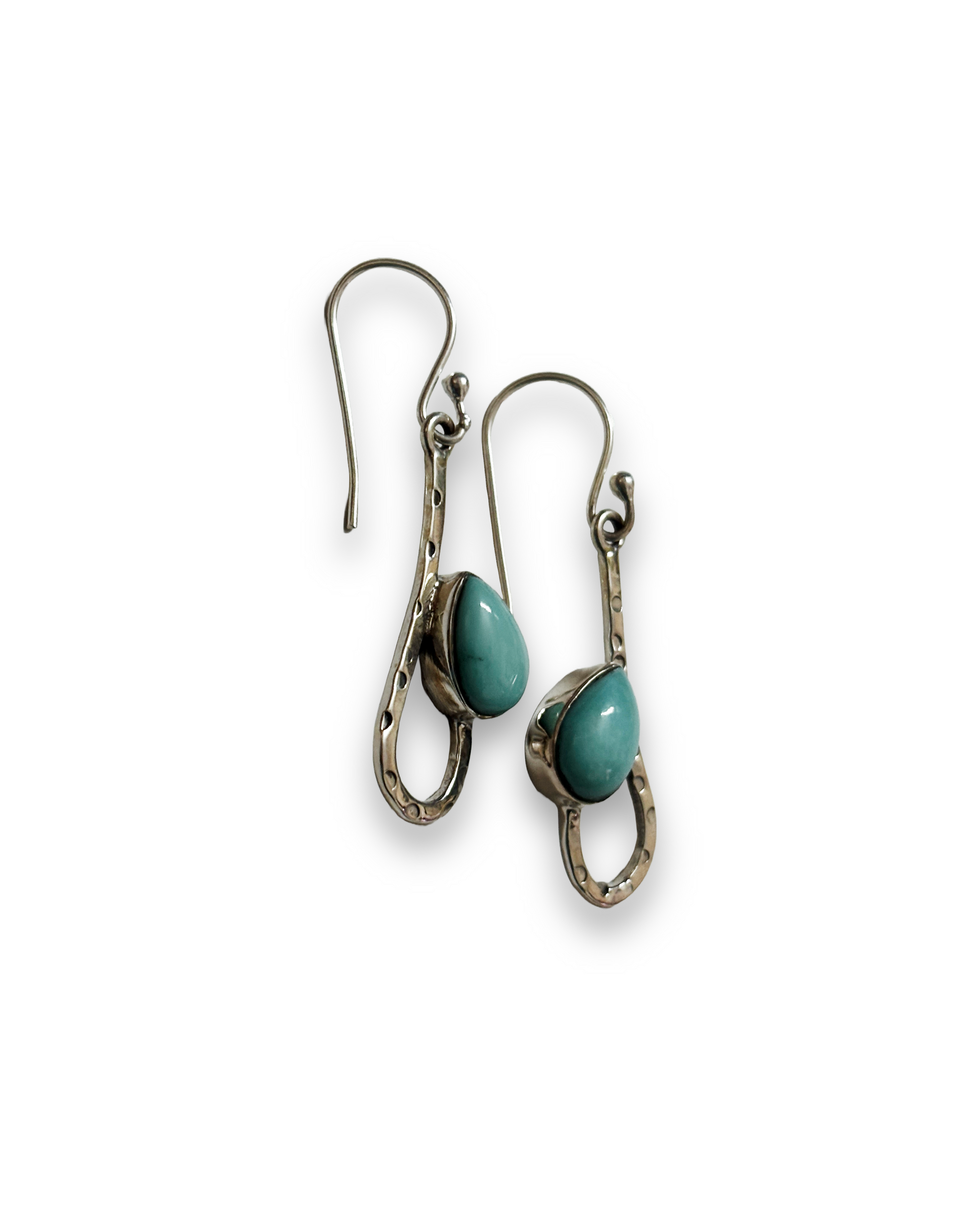 Inspired by flowing forms and natural rhythm, the Blue Lagoon Dangle Earrings are an asymmetrical pair in 925 sterling silver, set with calming turquoise stones — traditionally known for protection and emotional balance. The soft blue-green stones and curved silhouette offer a unique, effortlessly chic look.