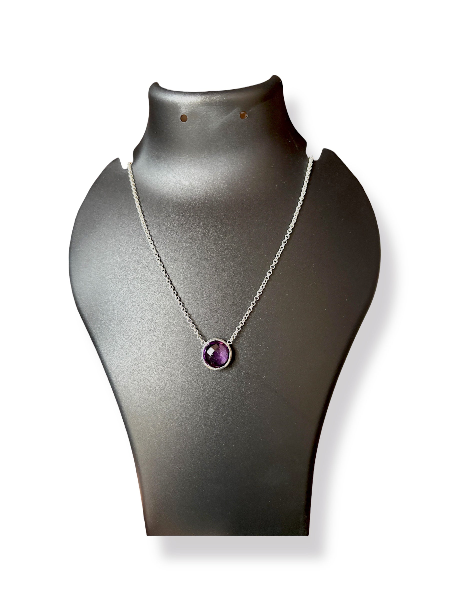 Soft elegance, set in silver — The Violet Dew necklace features a natural round amethyst pendant set in 925 sterling silver, radiating a deep yet gentle violet hue. Known as the stone of calm, clarity, and spiritual growth, amethyst brings a serene touch to your everyday silver jewelry collection.